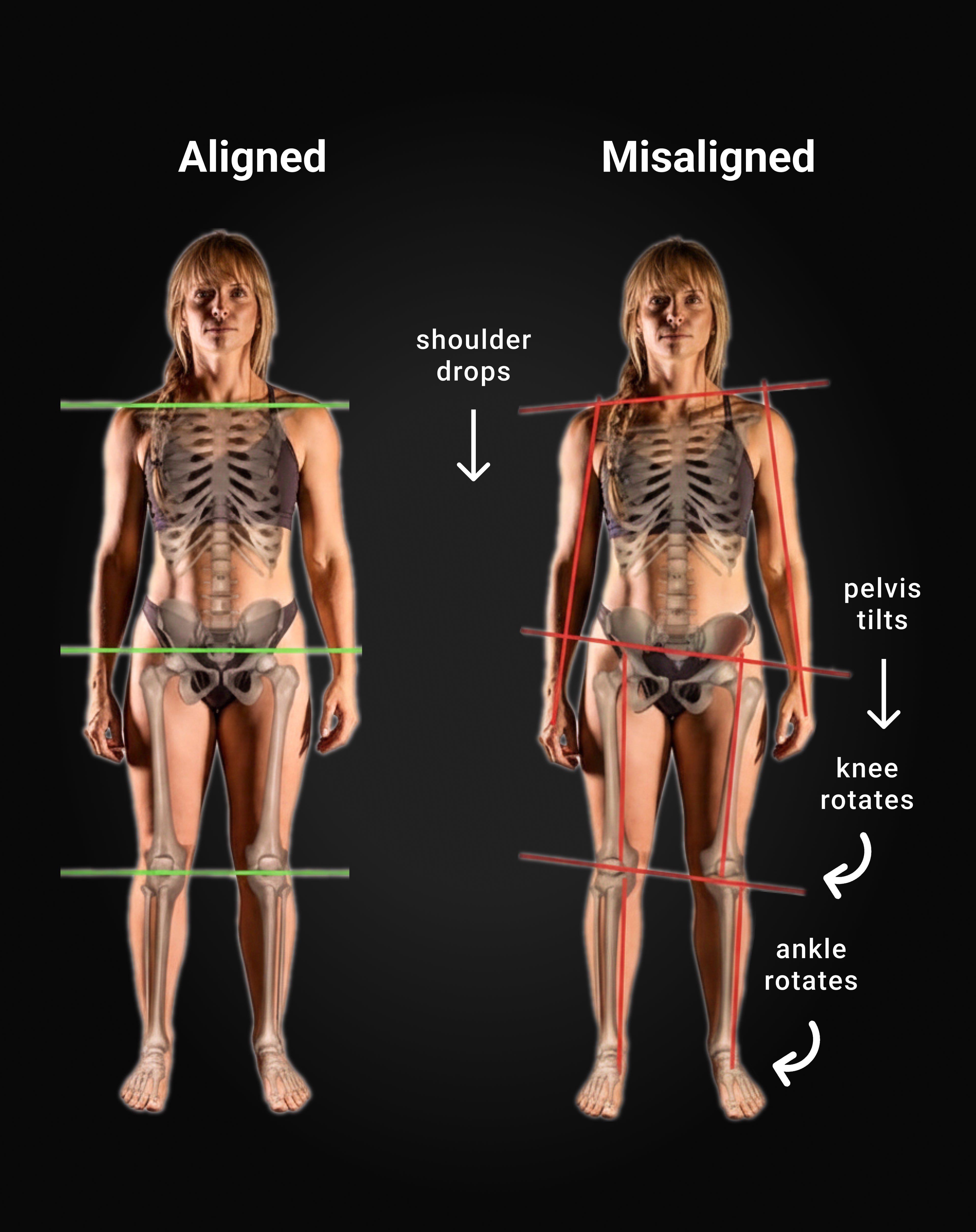 The proper positioning of the bones so that muscles are in their optimal length to generate force. Misalignment causes certain muscles to be overactive and tight, while others become inhibited and weak.